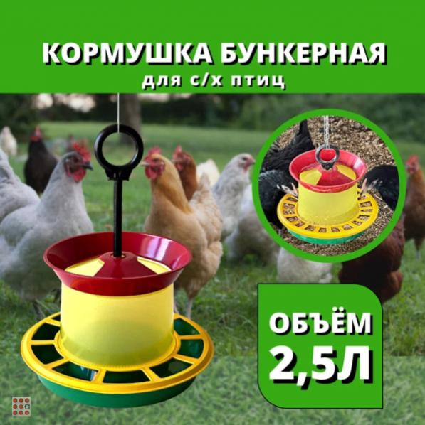 Кормушка бункерная с крышкой д/птицы 2,5л ...